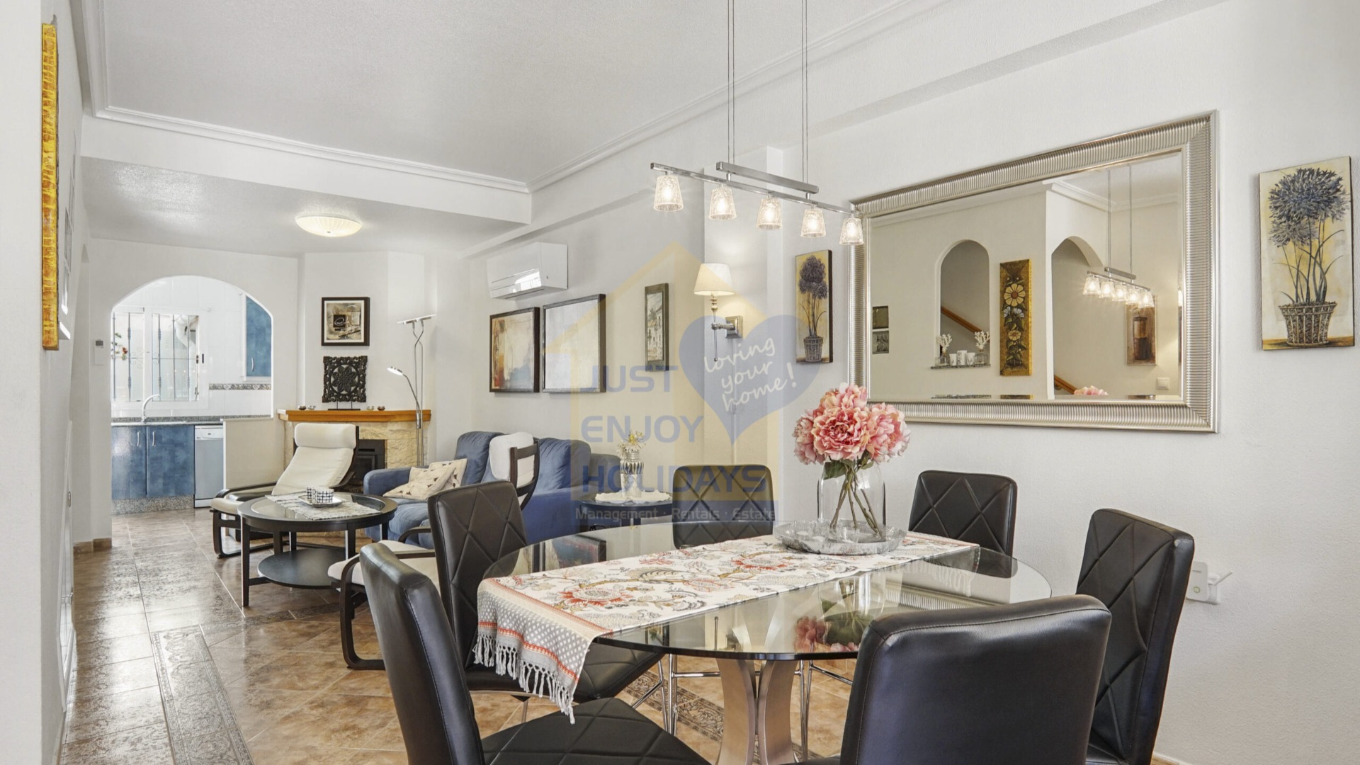 The description of this cottage has not yet been translated. This is the original description: Genieten van de spaanse zon dan zit je goed bij ons vakantiehuis. Op slechts 2 km van het strand van Playa Flamenca, Orihuela Costa is ons vakantiehuis gelegen. Ons huis ligt in een gesloten urbanisatie. De indeling van ons huis is als volgt, een terras vooraan de woning op de begane grond, een living met aansluitend de keuken en een berging met een badkamer voorzien van douche beneden. op het eerste verdiep bevinden zich 2 slaapkamers elk voorzien van een twee persoonsbed, alsook is er op dit verdiep een badkamer met douche, op het tweede verdiep is er ook nog een slaapkamer die de volledige lengte van het huis omvat waar er ook 2 éénpersoonsbedden staan en ook een badkamer met douche, op dit verdiep bevindt zich nog een terras. Wij hebben ook een ondergrondse parkeerplaats voor als er mensen een auto huren of zelf met de auto tot in Spanje rijden om deze veilig te parkeren, er is voldoende parkeergelegenheid rond de urbanisatie ook. De urbanisatie is voorzien van een buitenzwembad geopend van mei tot eind oktober en een binnenzwembad geopend van november tot eind april. Op zo'n 600 m wandelafstand bevindt zich La Zenia shopping boulevard center waar er tal van winkels en restaurants zijn. Op zaterdag gaat elke week de lokale markt door in de straat van de urbanisatie. Op enkele minuten rijden met de wagen bevindt zich de Cabo Roig strip. Een perfecte uitvalbasis om Murcia of Cartagena te bezoeken en Torrevieja met zijn zoutmeren. Dichtbij Villamartin met zijn golftereinen