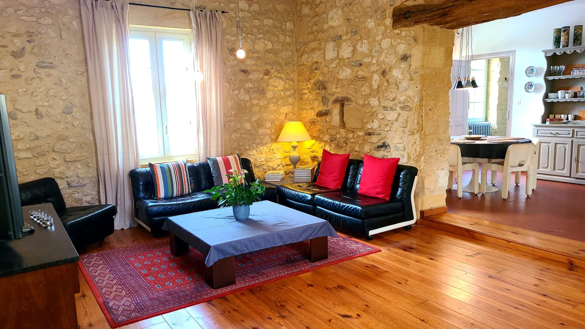 Bidou is gelegen in een klein dorpje "Lanquais" op 20km van Bergerac,in het hart van de Périgord pourpre (Dordogne), zo genoemd naar zijn wijngaarden. De Dordogne bevindt zich in "Aquitaine" in het zuidwesten van Frankrijk. Bidou heeft een domein van 30 Ha, bossen, weilanden en akkers. De zéér lange geschiedenis van Bidou bewijst zich door een onlangs gevonden factuur uit 1532, hierop stond reeds Bidou vermeld. Het was vroeger een wijndomein en dépendance van château de Lanquais. Een ondergrondse tunnel op ons domein bewijst de belangrijke band met het kasteel, deze diende tijdens de diverse oorlogen als ontsnappingsroute. De vroegere wijnopslagruimte werd omgebouwd tot 2 ruime gites van elk (80m²), die we apart of samen verhuren. Daarnaast is het privégedeelte waar we zelf wonen. De gites werden smaakvol verbouwd met oog op modern comfort, privacy en authenticiteit. U kan hier genieten van een rustvakantie temidden van de natuur op een domein gelegen op het typische franse platteland. P.S. Voor detailfoto's van de twee gites, duidelijke verhuurkalender met beschikbaarheid en prijzen: kijk even op onze site www.bidou-dordogne.com Voor informatie best mailen naar info@bidou-dordogne.com Gîte Santolin: Deze gite ligt aan de zwembadkant en kijkt uit op het zwembad. De gîte is 80m2 groot met alle moderne comfort en is geschikt voor maximaal vijf personen. Er is een inloopdouche, keuken, salon en twee ruime slaapkamers. Het terras ligt aan de voorzijde van het huis. Bij uw aankomst zijn alle benodigde bedden opgemaakt, handdoeken liggen klaar en een verrassing staat op u te wachten in de koelkast. Dus enkel koffers uitpakken en de vakantie kan beginnen. P.S. Voor detailfoto's van de twee gites, duidelijke verhuurkalender met beschikbaarheid en prijzen: kijk even op onze site www.bidou-dordogne.com Voor informatie best mailen naar info@bidou-dordogne.com Gîte Romarin: Deze gite kijkt uit op de voortuin. De gîte is 80m2 groot met alle moderne comfort en is geschikt voor maximaal vijf personen. Er is een inloopdouche, een tweede badkamer met massagebad, keuken, salon en twee ruime slaapkamers. Romarin heeft een terras aan de voorzijde van het huis en een extra afgesloten privétuin met een tweede terras. Hier kan je s'avonds van de ondergaande zon genieten en heb je een mooi verzicht op de weiden achteraan. Bij uw aankomst zijn alle benodigde bedden opgemaakt, handdoeken liggen klaar en een verrassing staat op u te wachten in de koelkast. Dus enkel koffers uitpakken en de vakantie kan beginnen. P.S. Voor detailfoto's van de twee gites, duidelijke verhuurkalender met beschikbaarheid en prijzen: kijk even op onze site www.bidou-dordogne.com Voor informatie best mailen naar info@bidou-dordogne.com